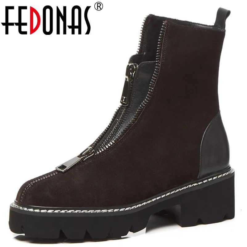 Kopen Goedkoop FEDONAS Mode 2019 Vrouwen Enkellaarsjes Koe Suede Kwaliteit Hoge Hakken Martin Schoenen Vrouw Ronde Neus Korte Motorlaarzen Online