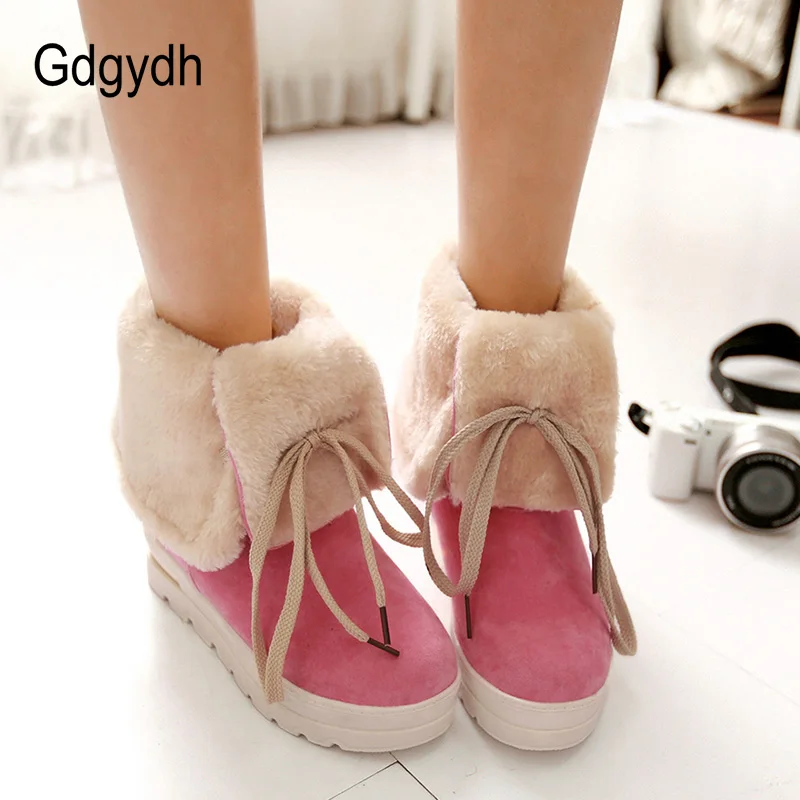 Goede Koop Gdgydh Comfortabele Vrouwen Suede Winter Schoenen 2018 Winter Warme Snowboots Wiggen Vetersluiting Warme Snowboots Promotie Grote Maat 42 Goedkoop